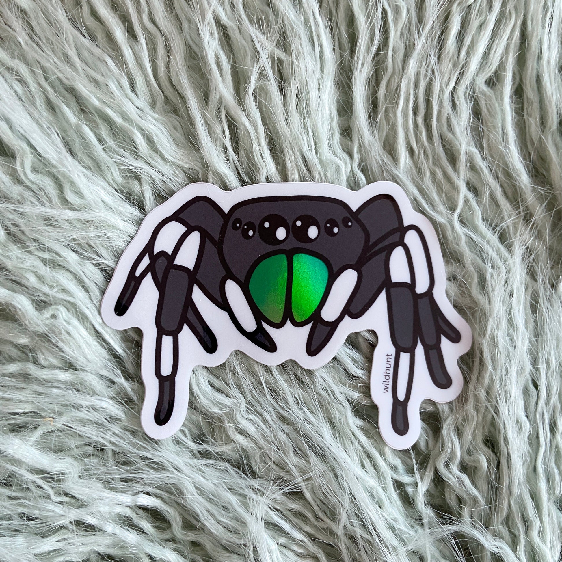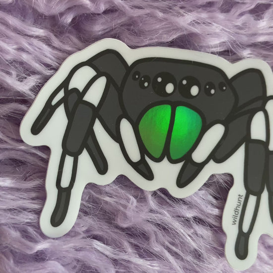 3.5" holographic vinyl sticker of the cutest little spood around! The Bold Jumping Spider is a common tiny North American friend, boasting shiny iridescent chelicerae (the mouth thingies) and some truly impressive hops. I don't know about you, but they always put Des'ree's 1994 hit in my head.